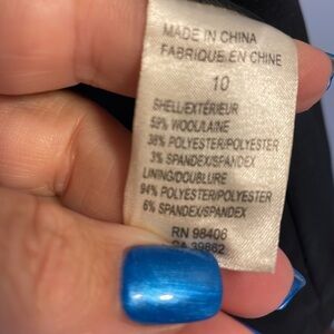 THEORY black wool stretch poly blend blazer size 10 runs smaller / classic / wardrobe staple / designer