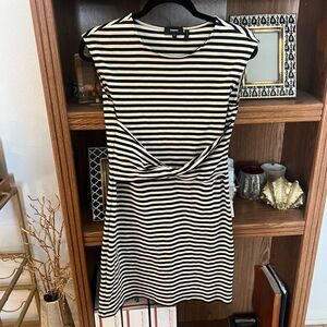 Theory black and white stripe sleeveless front twist dress. Excellent condition.