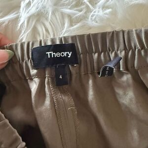 Experience effortless style with these Theory wide-leg pants in a versatile green hue. Featuring a relaxed fit and a high-waisted design, they offer both comfort and a chic silhouette. Perfect for casual outings, these pants are a must-have addition to your wardrobe.