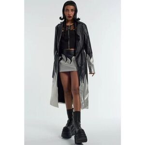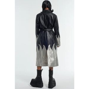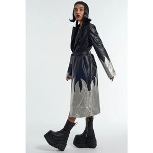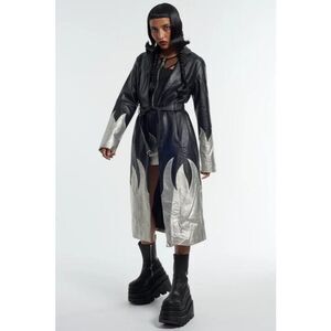 THE RAGGED PRIEST Immortal Coat 16 Silver Flames Faux Leather Trench Mall Goth