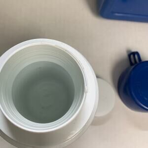 Both thermos tumbler and lunch box are in good preowned condition. Both have scratches on them, showing signs of use. The Batman lunch box measures 9.25 inches x 7.75 inches. The thermos measures 7 inches tall and can fit into the lunch box and be closed shut. Thermos comes with closing lid and serving cup.