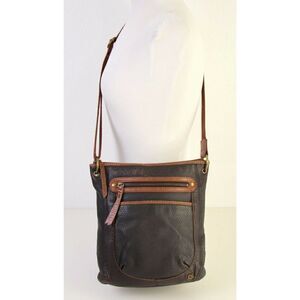THE SAK TWO TONE BROWN GENUINE LEATHER X-BODY SHOULDER BAG HANDBAG CROSSBODY