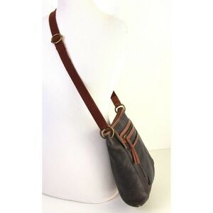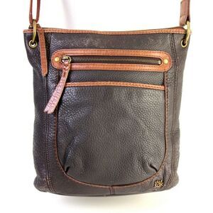 THE SAK TWO TONE BROWN GENUINE LEATHER X-BODY SHOULDER BAG HANDBAG CROSSBODY