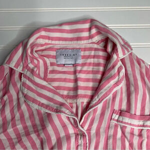 THE SHIRT ROCHELLE BEHRENS Pink Striped Button Down