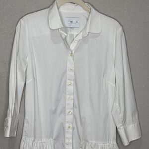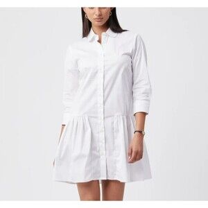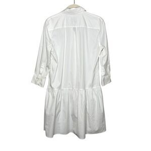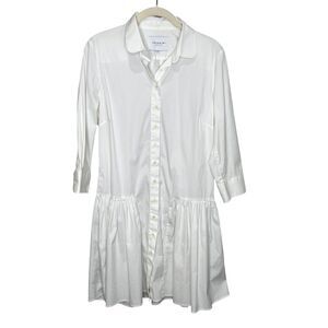 THESHIRT Rochelle Behrens Shirt Dress Womens Medium White Drop Waist Ruffle Hem