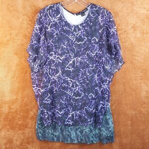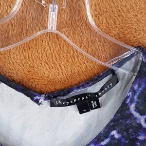 THEYSKENS THEORY Womens Dress Medium Purple Green Shift Pullover Layered Stretch