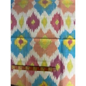 The THIBAUT Bimini Ikat Linen Blend Fabric Sample is a 26x26 inch piece of medium-weight interior fabric made from a linen blend material in multicolor. The ikat pattern adds a unique and stylish touch to any design project, making it a versatile and attractive option for various applications. Perfect for those looking to incorporate a pop of color and texture into their home decor or creative endeavors.