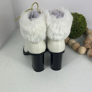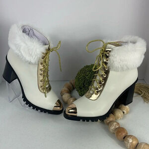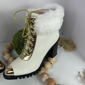 Manmade, polyester faux-fur upper; manmade lining; rubber sole