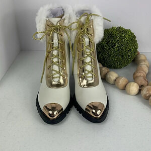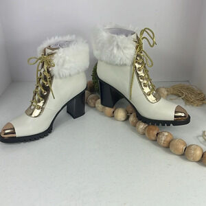 THINGS II COME Women's Maliyana Luxurious Lace-Up Embellished Block-Heel Booties