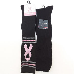 THINK PINK, AMANDA TAYLOR, 2 pair Knee High Socks, Think Pink size 9 - 11 85% acrylic, 10% nylon, 5% spanded, Amanda Taylor solid color size 5 - 11 70% cotton, 28% nylon, 2% spandex. SAVE BIG! AUTOMATIC 30% BUNDLE DISCOUNT! ADD TO A BUNDLE!