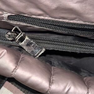 Rendered in a shiny version of the label's signature quilted nylon, this conveniently sized Think Royln bag gains extra versatility and eye-catching appeal from 3 distinct, interchangeable shoulder straps.