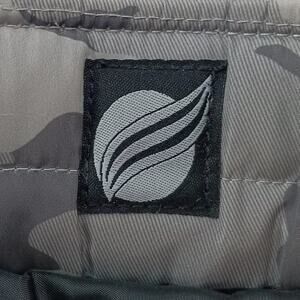 *Neutral Green Camo Print, 100% polyester shell, Zip Top closure, Down like quilted polyfill