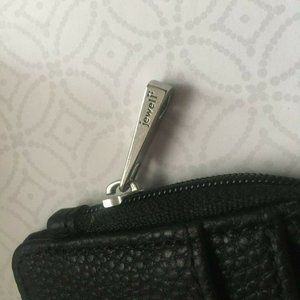 This wallet-sized credit card carrier features azipper closure and lobster claw clasp for attaching to a purse or tote. …Thefaux leather is classic and coordinates with our line of handbags, totes andaccessories for a stylish solution set….