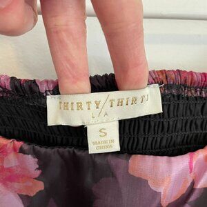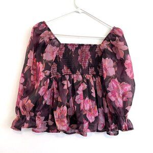 THIRTY THIRTY LA Plum Purple Pink Floral Shiny Square Neck 3/4 Sleeve Blouse S