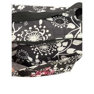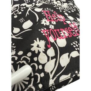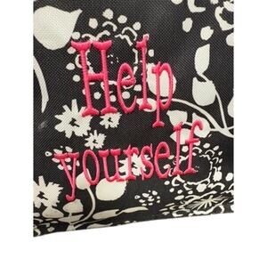 Out N' About Thermal Black Floral Brushstrokes Cooler BagThe "THIRTY-ONE" Insulated Cooler Lunch Bag is a stylish picnic bag featuring custom embroidery with the phrase "HELP YOURSELF" and a zip shut closure. Made by the brand Thirty-One, this white cooler is perfect for outdoor activities and picnics. Keep your food fresh and organized while adding a touch of personalized style to your outdoor dining experience. 9.5" Tall, 11"Wide, 6.5" Depth