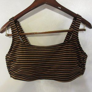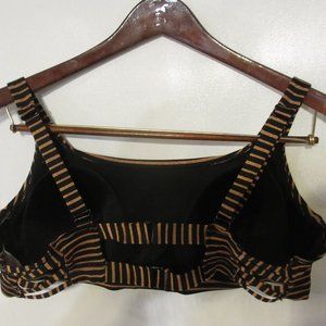 Black and gold bathing suit top is a size 20W. Solid black bathing suit top has removable inserts. It has no tags showing the size or brand. Bathing suit bottoms are Liz Lange Maternity XL. All three are in great shape with no tears, stains, snags, etc. All three bathing suits are for sale for the same price.