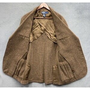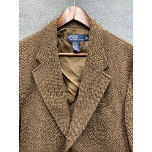 Vtg Polo Ralph Lauren Sport Coat Herringbone Wool 3 Button Elbow Patch Brown L