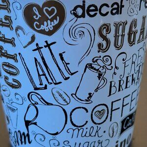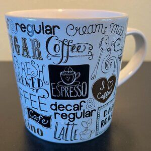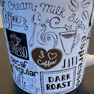 THL All Things Coffee Mug w/ Coffee Themed Collage Design Wrap around design features a delightful collage of coffee themed graphics and words in decorative fonts. Graphics include: whole coffee beans, steaming cups of freshly brewed coffee, and a cream pitcher pouring out the word CREAM. Large ceramic mug with a large comfortable easy-to-grip handle. Graphics and words are in light brown, dark brown and black. Measures 4” tall with a 4” diameter; 5.5” across including handle. Holds 16 fluid oz. Bundle this mug with other items in my closet for an automatic discount and to save on combined shipping. Offers are always welcome! If you’re new to Poshmark - Welcome! Use our sign up code GLOBALSANDRA to get $10 off of your purchase.