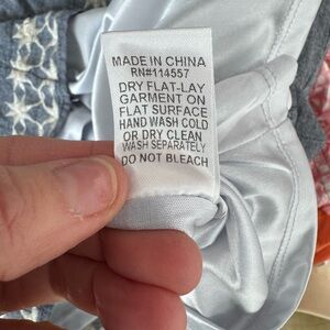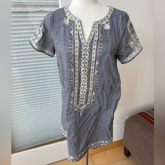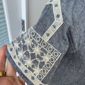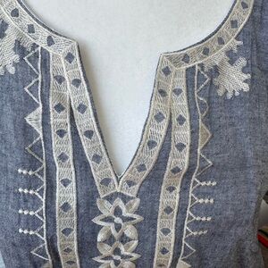 Light color denim and white embroidered shift dress. Lightweight and it is lined