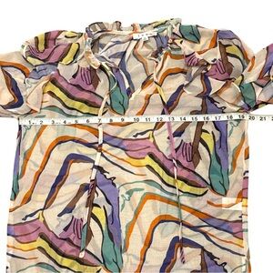 THML Abstract Multicolor Sheer Ruffle Blouse Tie Neck Long Sleeve Women’s Small
