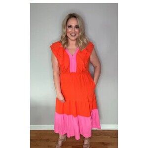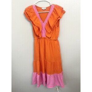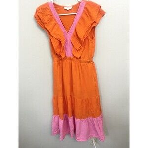 THML Anthropologie Dress Floral Smocked Lined Maxi Colorblock Size Small Fairy