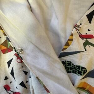 The dress is multicolored and has a graphic print that adds a touch of whimsy and artsy vibe to the overall look. It is lined and has a pullover closure for added comfort. This dress is perfect for the summer, fall, and spring seasons, and can be hand washed or machine washed on a gentle cycle. Get your hands on this unique, indie, and colorful dress today!