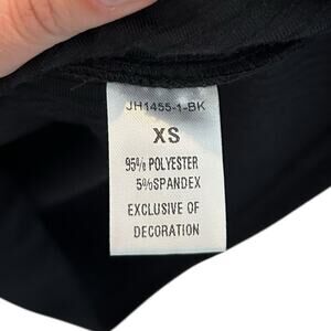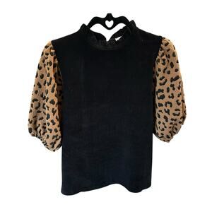 THML Black Corduroy Cheetah Print Short Puff Sleeve Ruffle Neck Top Womens XS