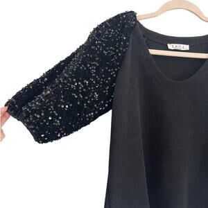 THML Black Knit Top Sequin Sleeves Size Small Sweater V Neck Basic Capsule Goth