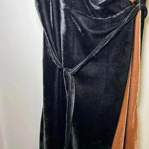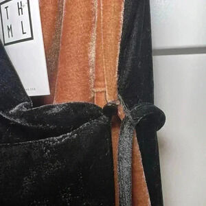 THML Black and Brown Spaghetti Strap Stretch Velvet Wrap Dress Size S NWT