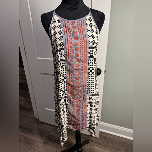 THML Black and White Geometric shark bite hem Dress Aztec Navajo inspired print