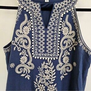 THML Blue Embroidered Blue Sleeveless Sheath Dress Size Small