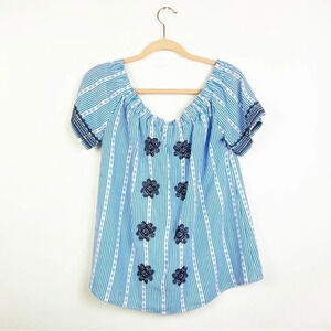 THML Blue Embroidered Top Off The Shoulder Size Large