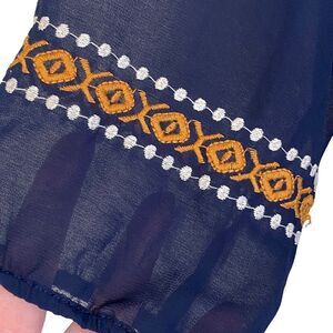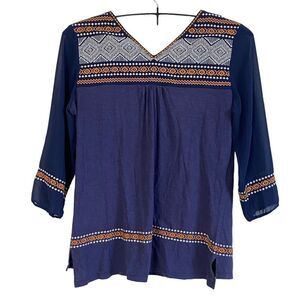 THML Boho Embroidered V Neck 3/4 Sleeve Blouse Sz L