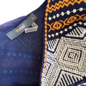 THML Boho Embroidered V Neck 3/4 Sleeve Blouse Sz L in EUC with no flaws