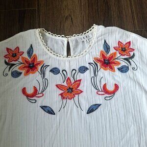 THML Boho Prairie Style Embroidered Lightweight Short Sleeve Blouse.