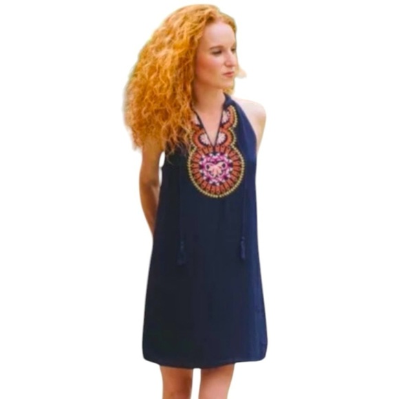 THML Boonie Embroidered Dress Sleeveless Sundress Tassels Lined Boho Sz Medium