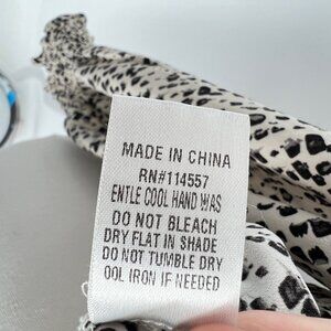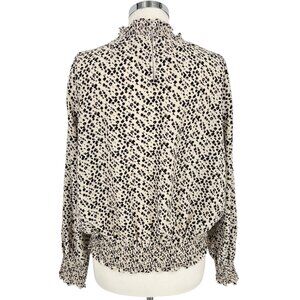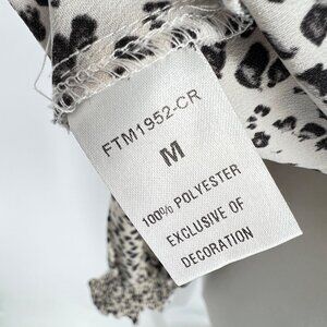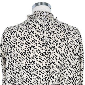 THML Brush Animal Print Smocked Ruffle Blouse Ivory Black Size Medium