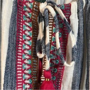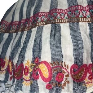 THML Celine Stripe Embroidered Halter Tassel Top, size large, lined