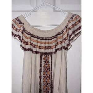 THML Cream Embroidered Off The Shoulder Dress Womens Medium Boho Chic
