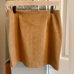 THML Cream and Tan Asymmetrical Pencil Mini Skirt