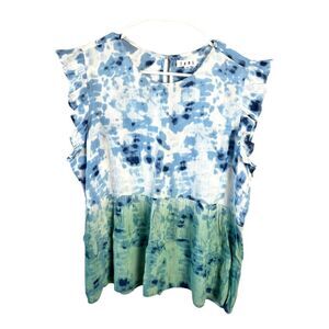 THML Dip Dye Ruffle Sleeve Ombré BlouseSize Large Boho Lagenlook Tiered Tunic