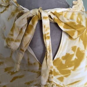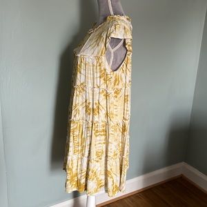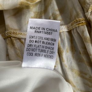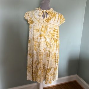 This darling little dress is perfect with sandals or boots, and is seasonally versatile! It is fully lined, and in good condition. It is white, off white, and a mustard/tan mix. Adorable.