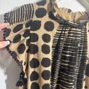 THML Dress Women M Black Tan Animal Print Shift Ruffle Cap Sleeve Cocktail Party