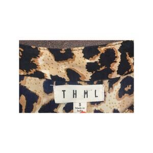 THML Embroidered Boho Top Small Leopard Print Mixed Pattern Tassel Blouse Artsy