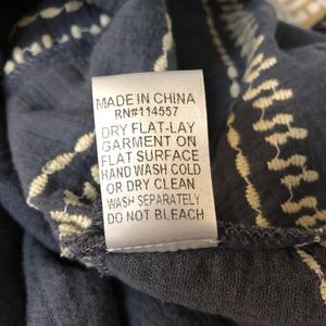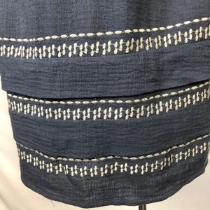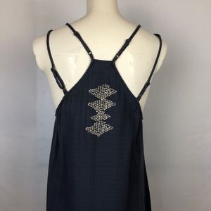 THML Embroidered Dress, adjustable shoulder straps, color is blue/grey. Material is cotton but it feels like linen.
