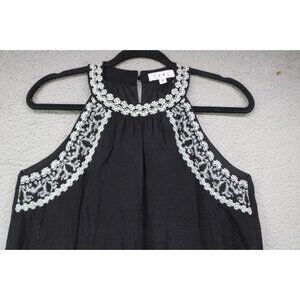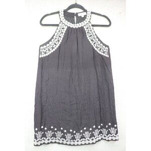 THML Embroidered Halter Style Dress-Size Medium/Petite. Item is in Great Condition. The material is 62% Rayon and 38% Polyester. The lining is 100% Polyester. Laying flat measuring armpit to armpit it is 18.5'' and 34'' in length.