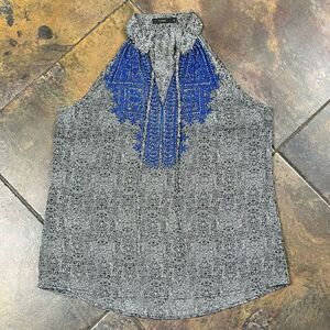 THML Embroidered High V-neck Sleeveless Flowy Blouse M