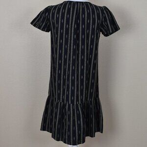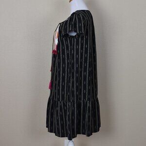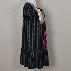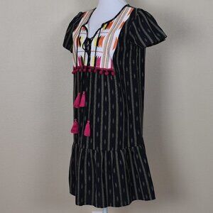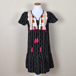 THML Embroidered Jacquard Dress. Size small. NEW with tag attached. Short sleeve. Black with beige stripe and multi-color front bodice. Fully lined.