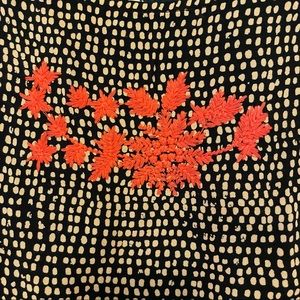 Uniquely, quality rayon embroidered shell/tank by THML. It has a nice loose flow to it, with darling salmon orange/red/pink embroidery on a boho polkadot background. Size M—see photos for measurements. In excellent condition.