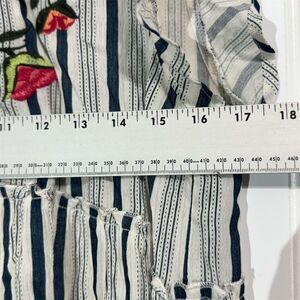 THML top | boho festival blouse | striped ruffle peplum | embroidered floral top | tassel tie back | cottagecore chic | summer spring top | 100% rayon lightweight | casual bohemian shirt | size M medium